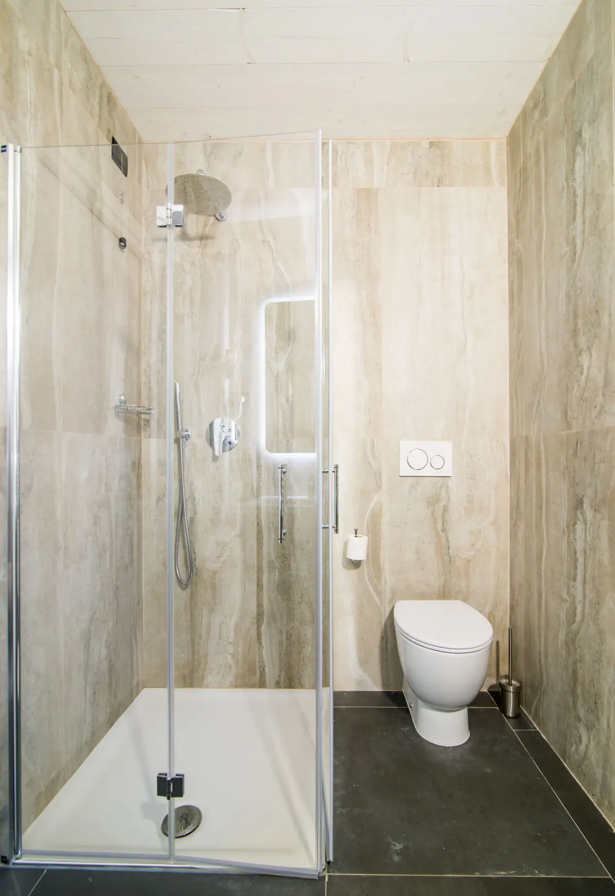 The large and elegant bathroom – as well as the room spaces – is suitable for the needs of people with different abilities .
